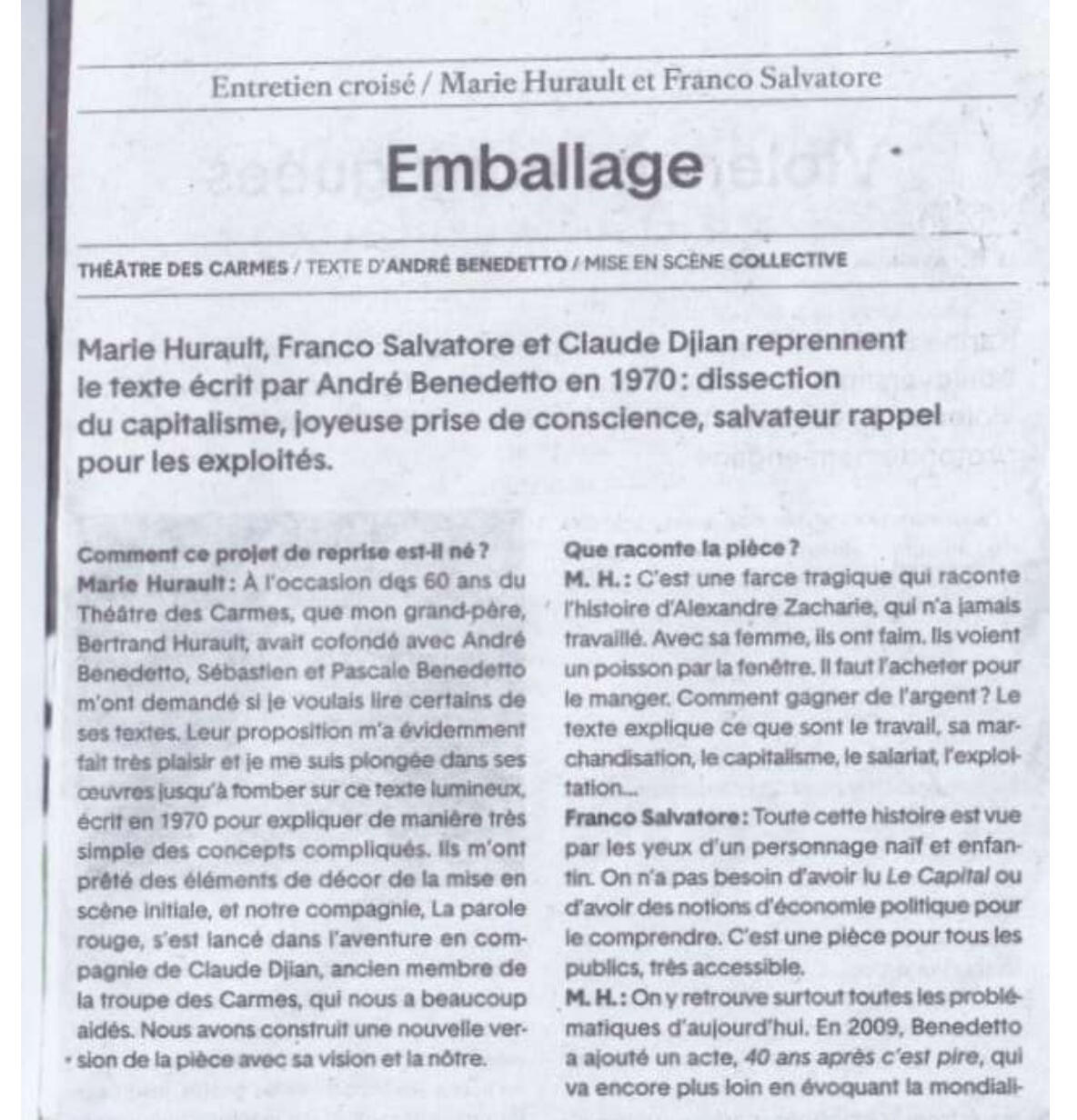 23 mai - EMBALLAGE - Théâtre des Carmes - Avignon