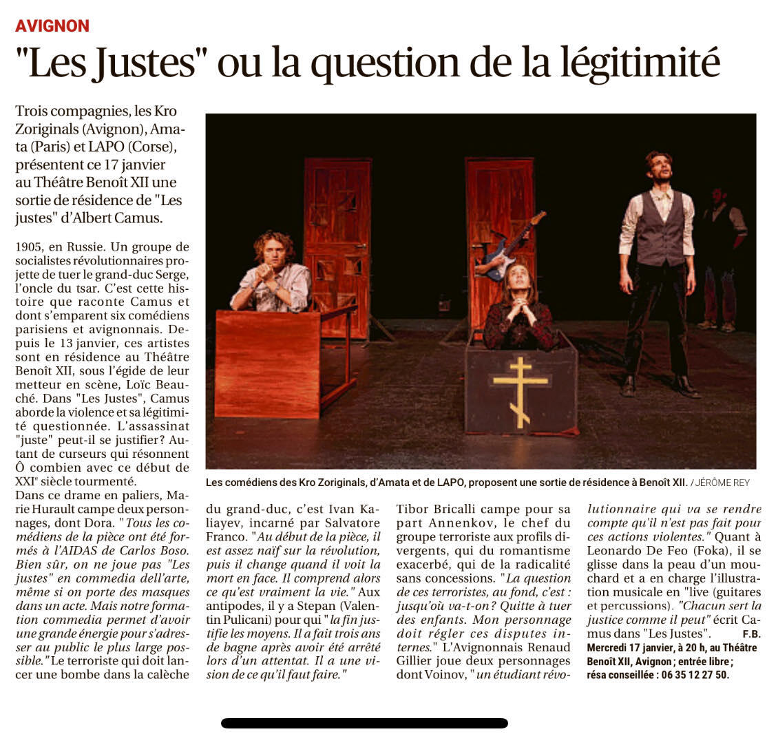 13 janvier - LES JUSTES - Théâtre Benoît XII - Avignon